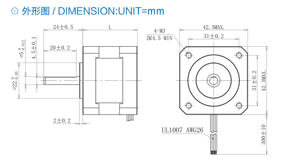 兩相步進電機-42C外形圖
